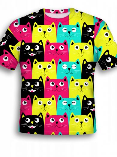 KOSZULKA 3D T-shirt KOLOROWE KOTKI XL TRWAŁA YOGA 59.99zł