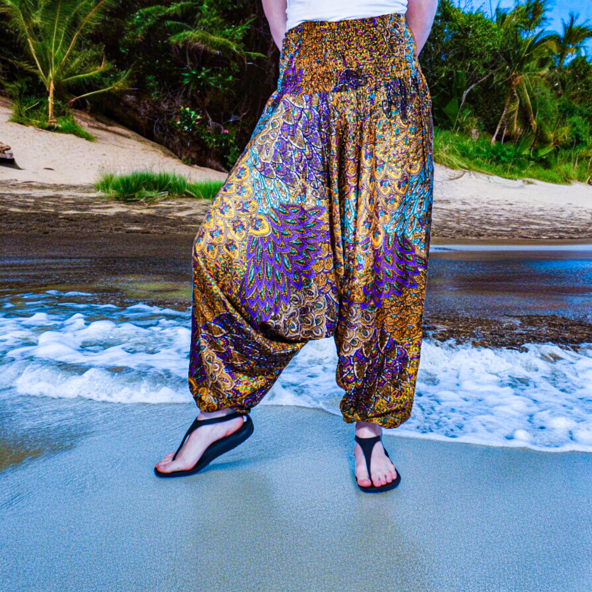 SPODNIE SZARAWARY KOLOROWE MIEKKIE Z INDII PIÓRA 99.99zł