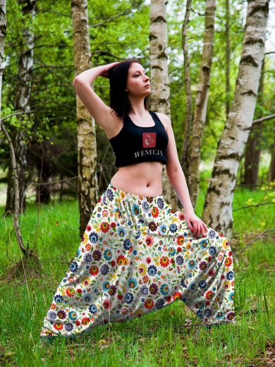 SZARAWARY SPODNIE HAREMKI ŁOWICKIE KWIATY YOGA 70.00zł