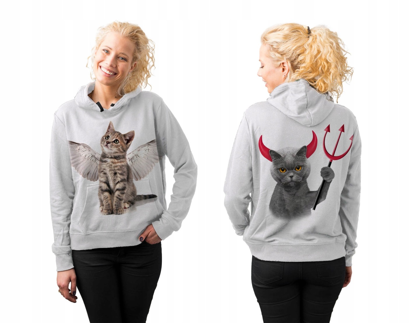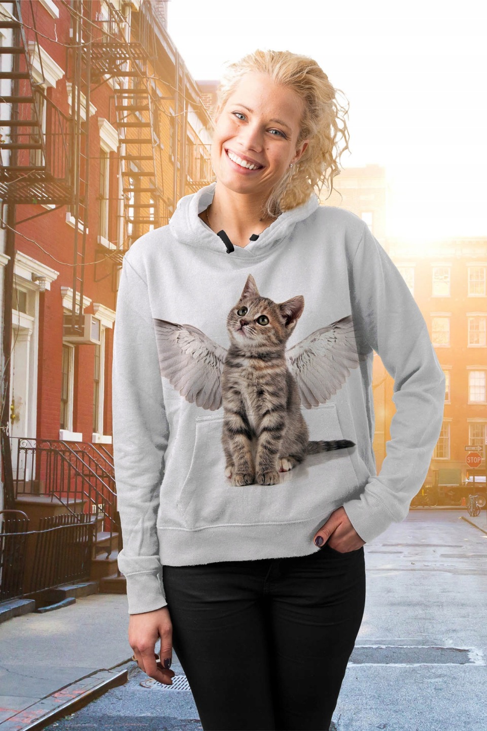 BLUZA DAMSKA Z KAPTUREM NADRUK FULL PRINT ''ANGEL CAT ''