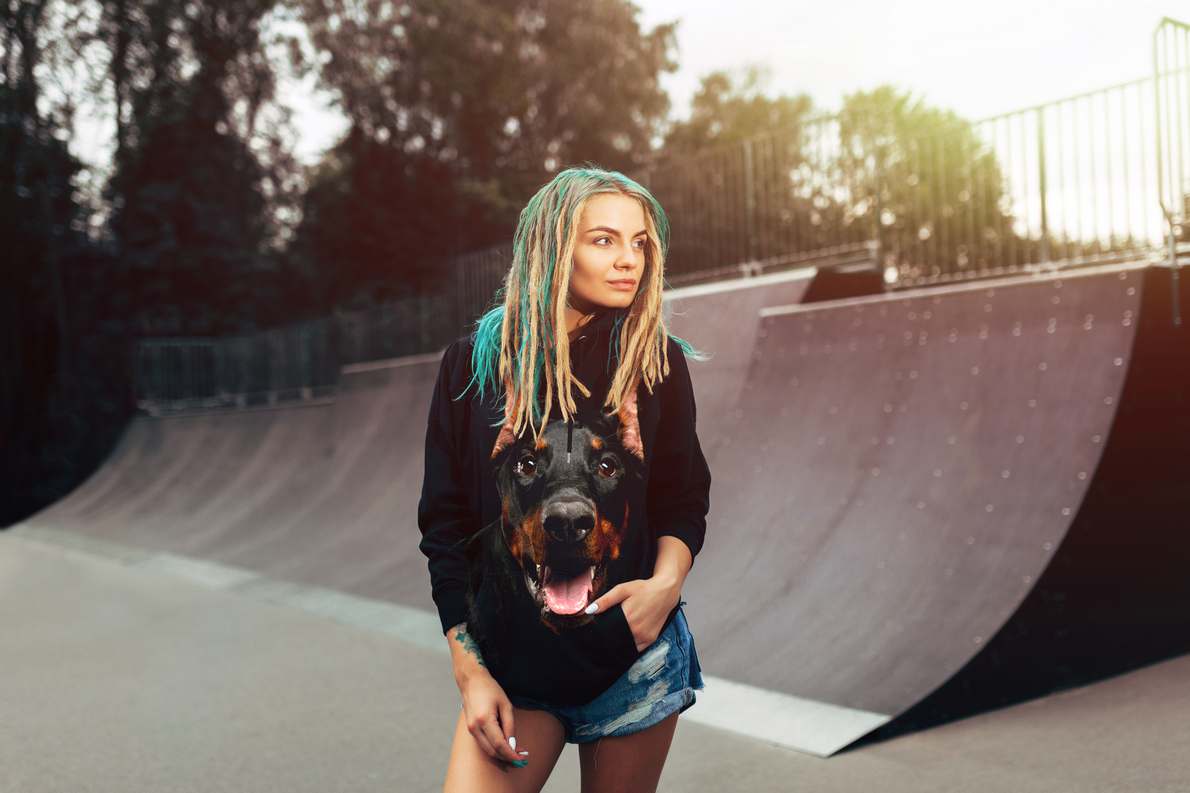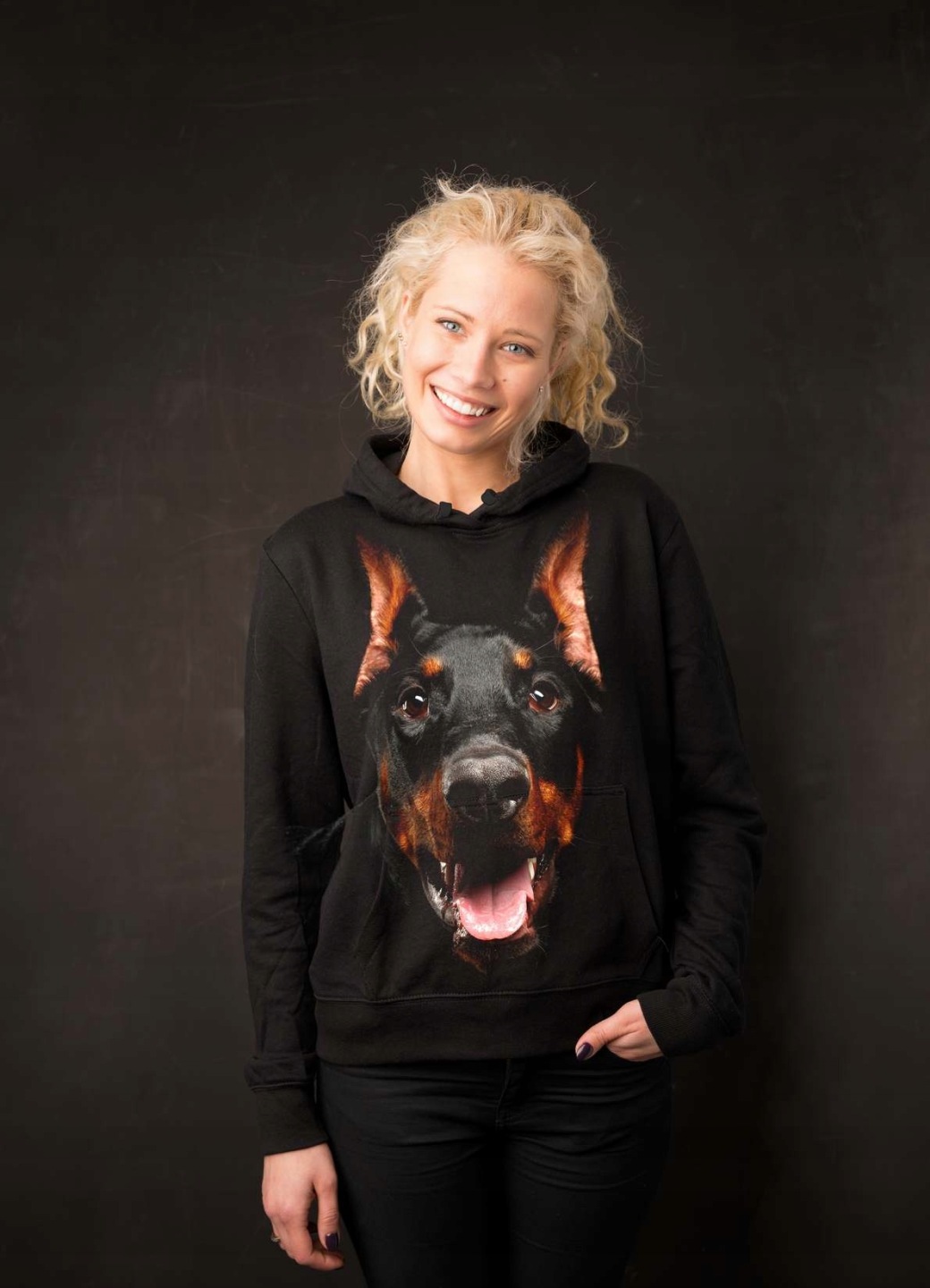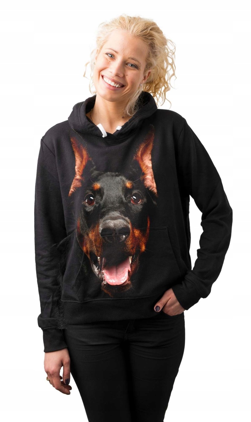 BLUZA DAMSKA Z KAPTUREM NADRUK FULL PRINT ''BLACK DOBERMAN''