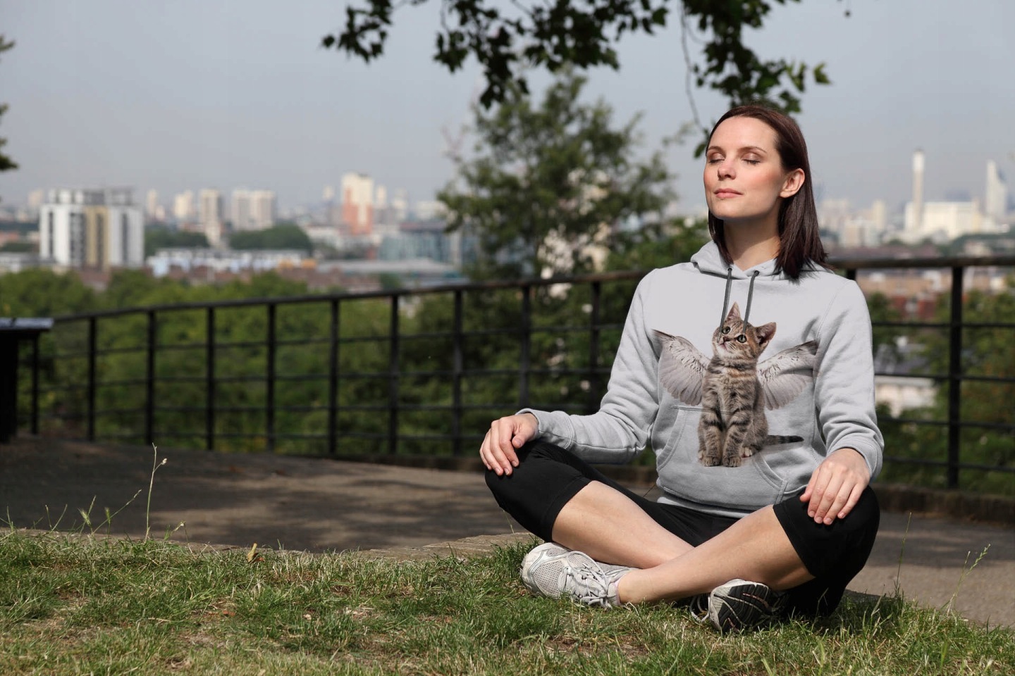 BLUZA DAMSKA Z KAPTUREM NADRUK FULL PRINT ''ANGEL CAT ''