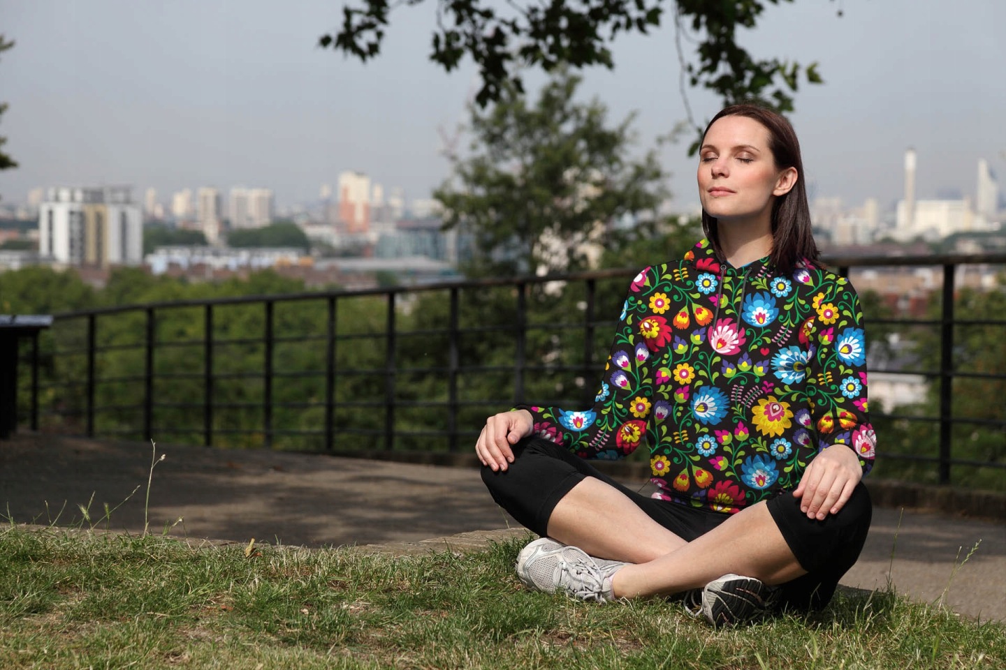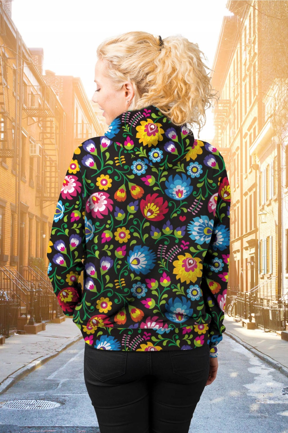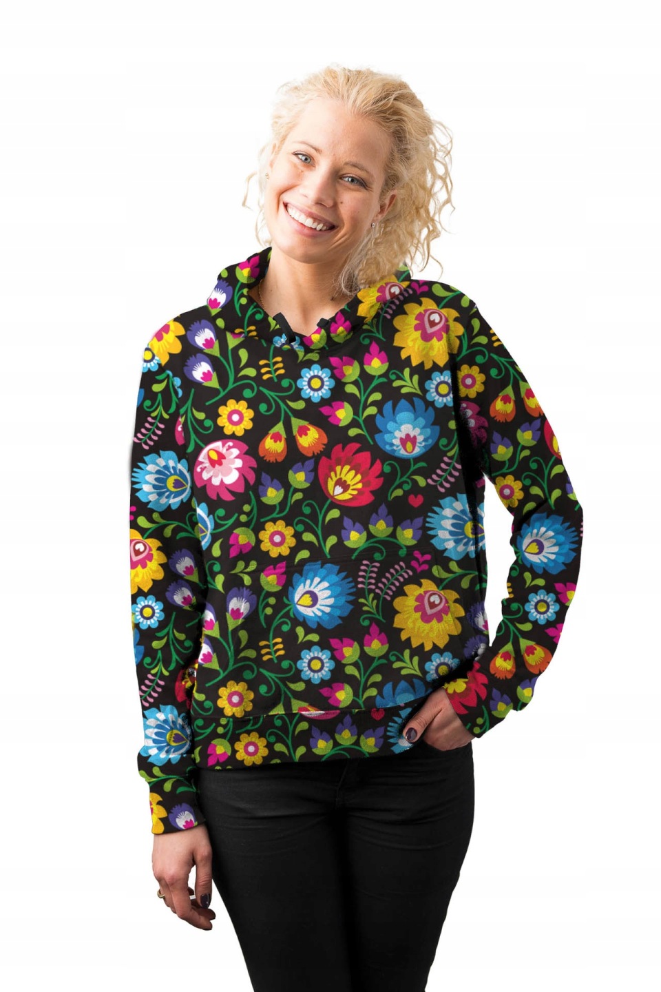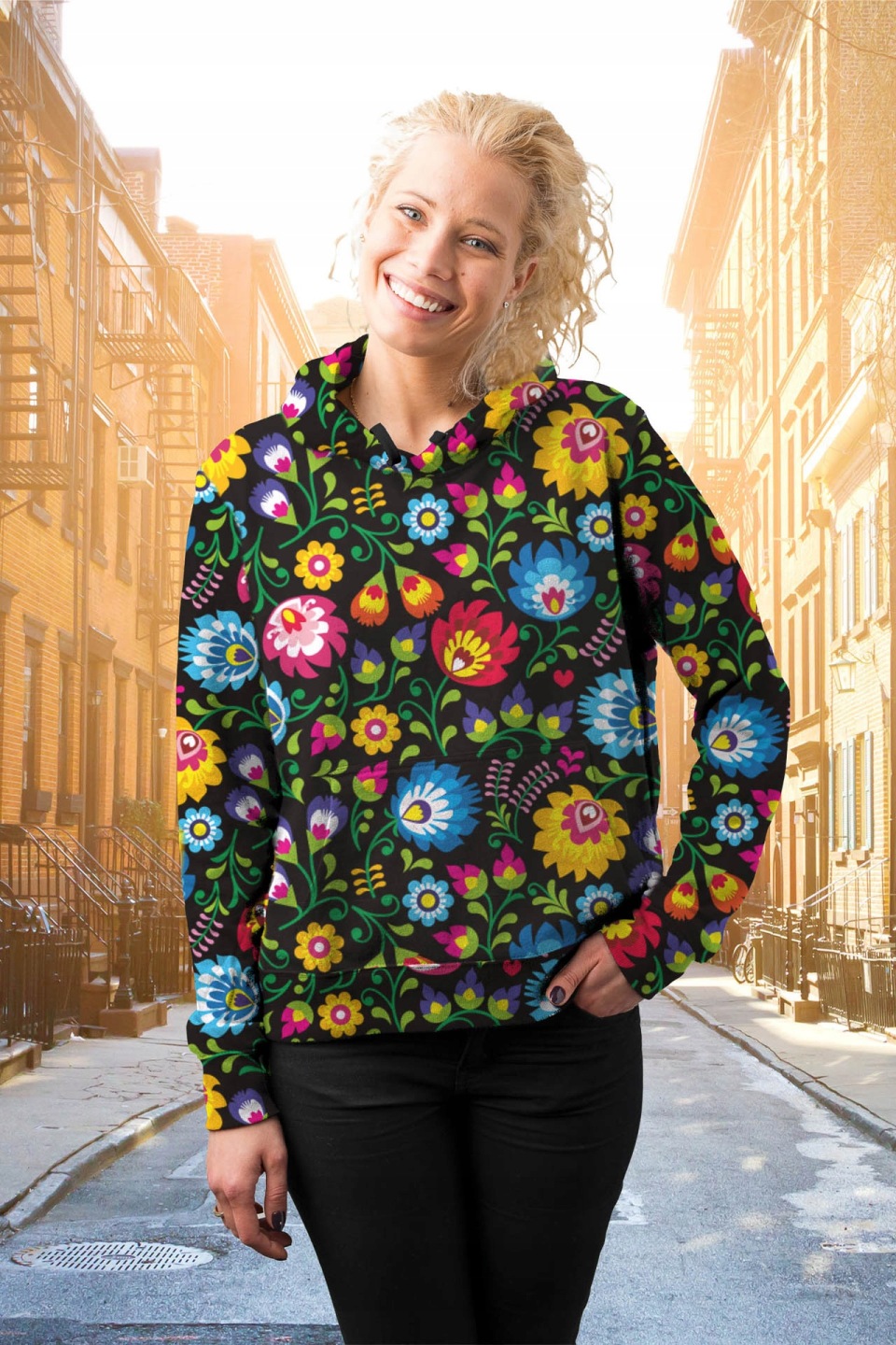 BLUZA DAMSKA Z KAPTUREM NADRUK FULL PRINT ''KWIATY ŁOWICKIE ''