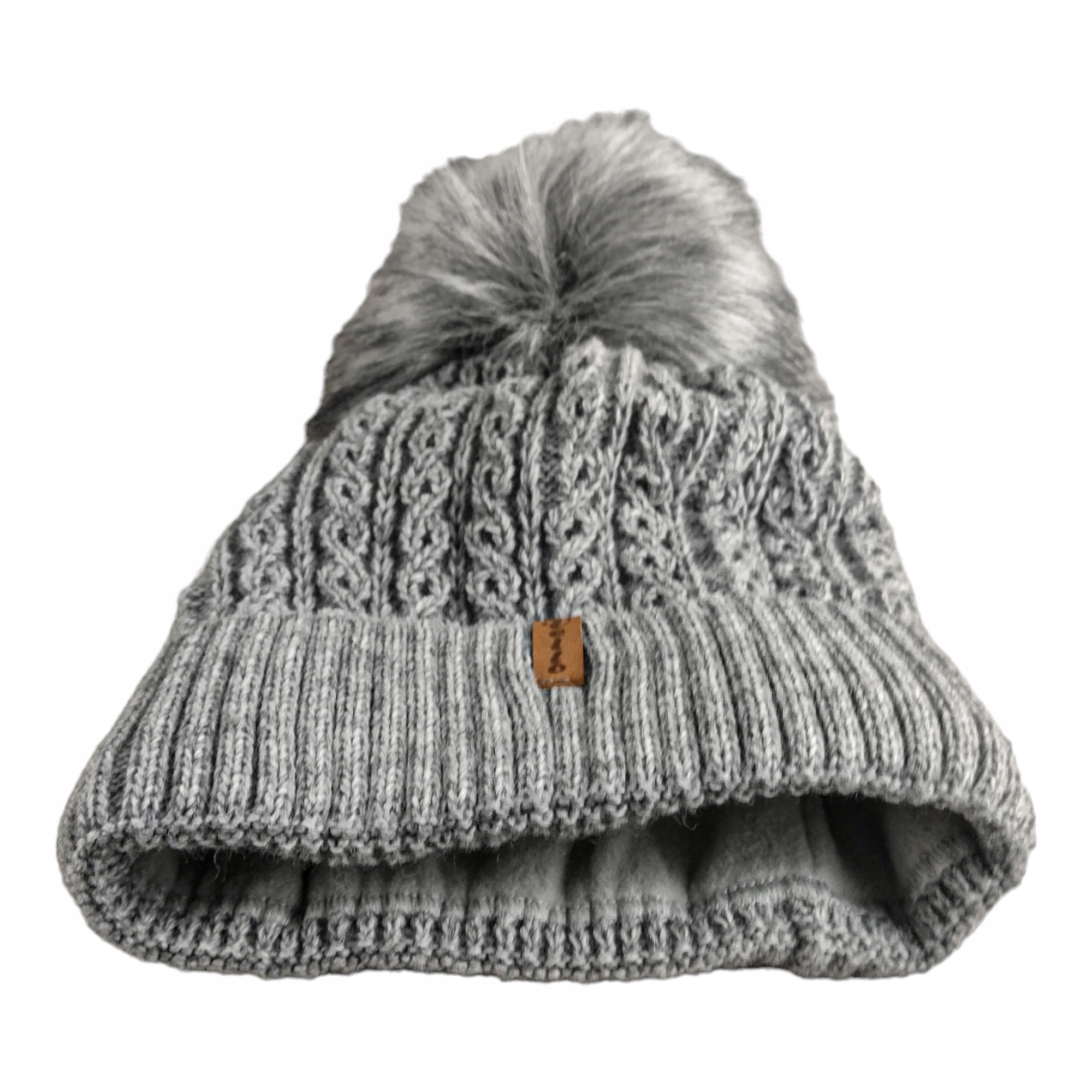 CZAPKA CIEPŁA WYWIJANA AKRYL ZIMOWA DROBNY WARKOCZ SZARY 54.99zł