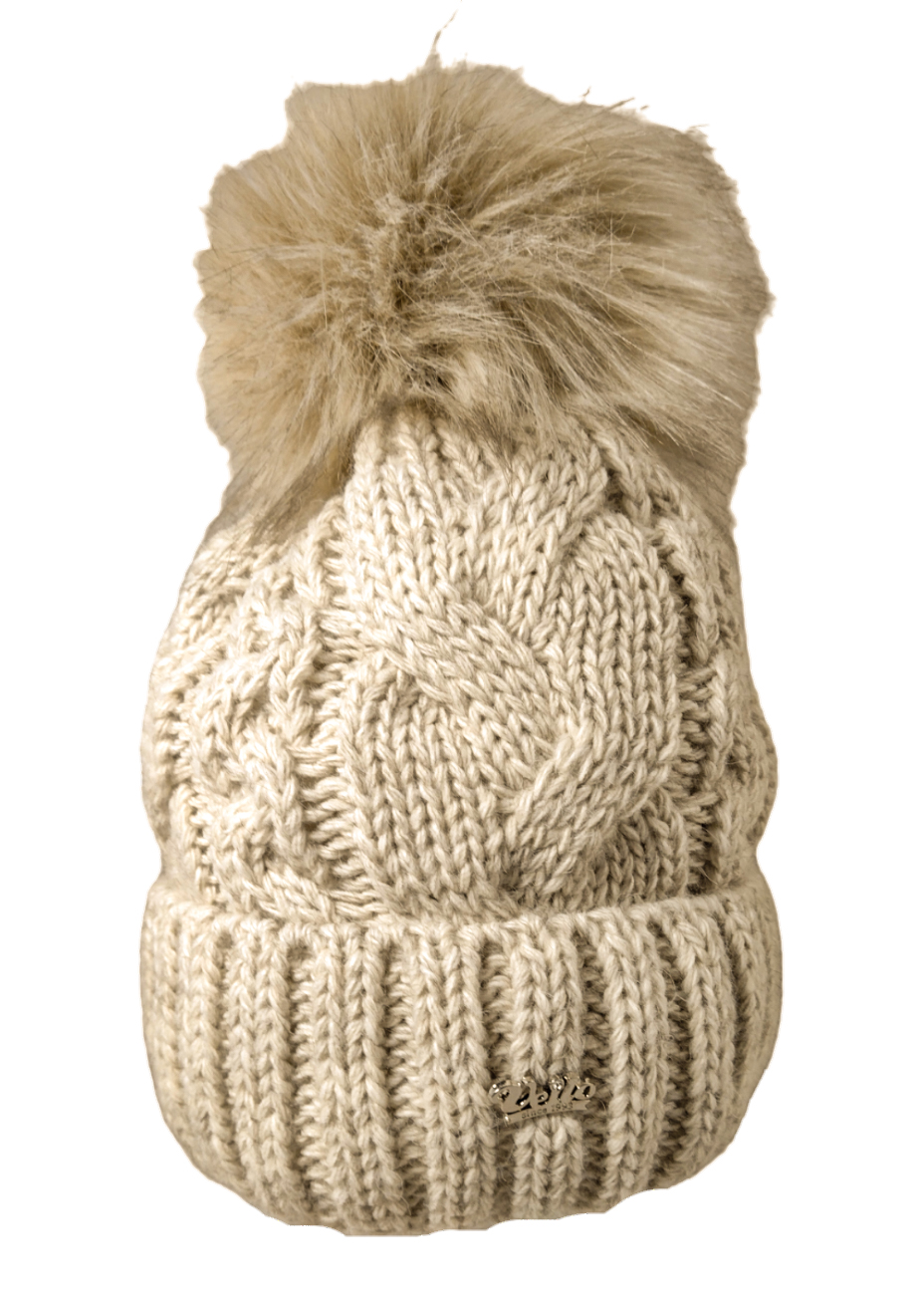 CZAPKA CIEPŁA WYWIJANA AKRYL ZIMOWA WARKOCZ BEŻ 54.99zł