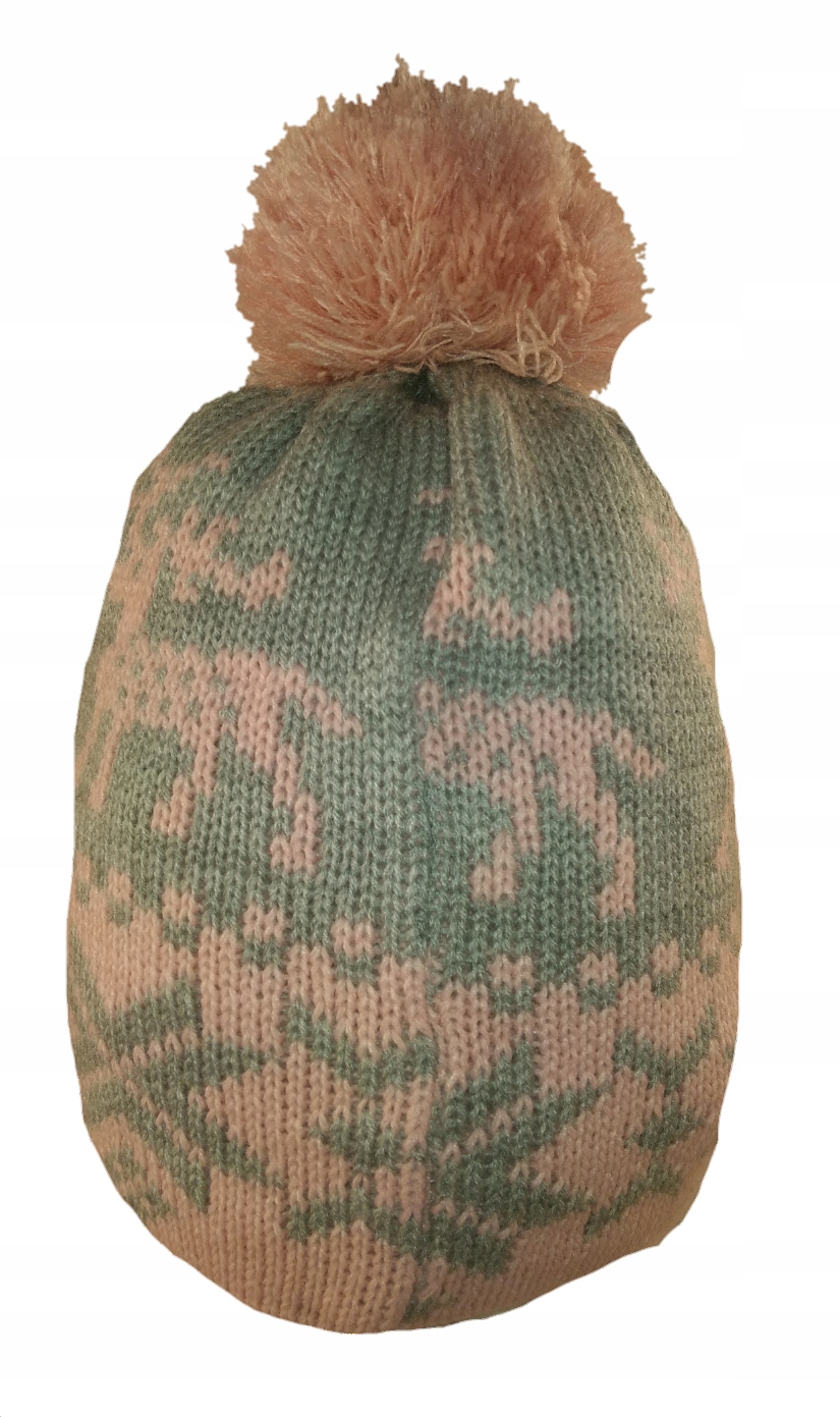CZAPKA ZIMOWA OCIEPLANA JELONKI GWIAZDKI szaro różowa 19.00zł