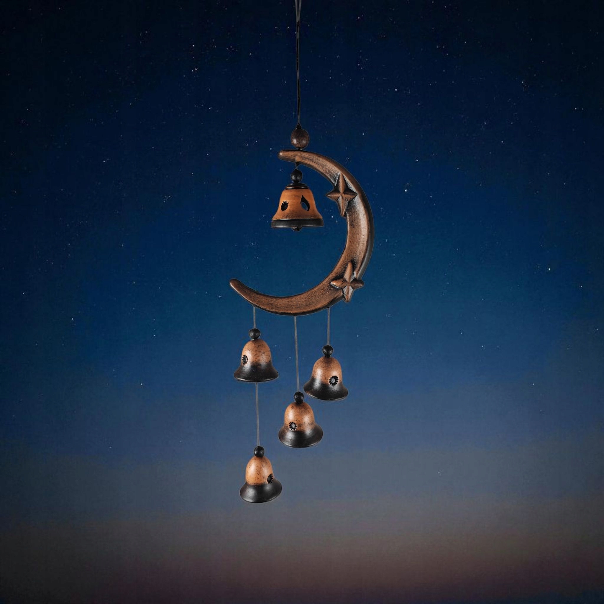 DZWONEK CERAMICZNY BRĄZOWY RĘCZNIE ZDOBIONY księżyc 40 CM 75.00zł