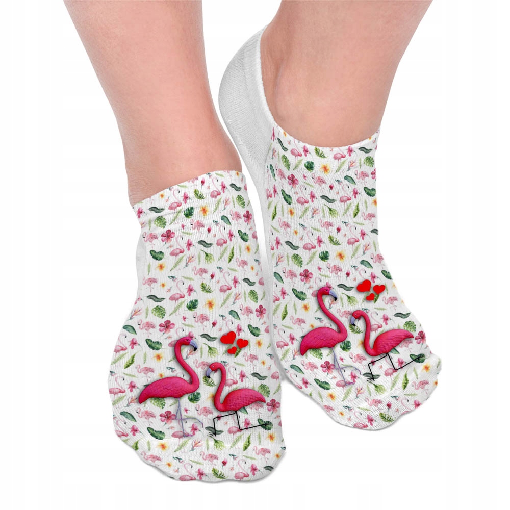 SKARPETKI STOPKI Z JEDNOSTRONNYM NADRUKIEM FULL PRINT ZAKOCHANE FLAMINGI.