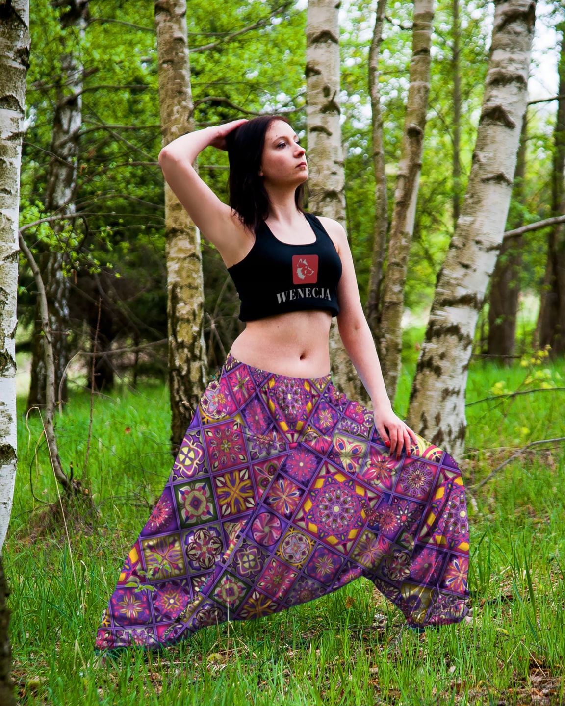 SPODNIE SZARAWARY WZORZYSTE ''WZÓR MANDALA FIOLET"
