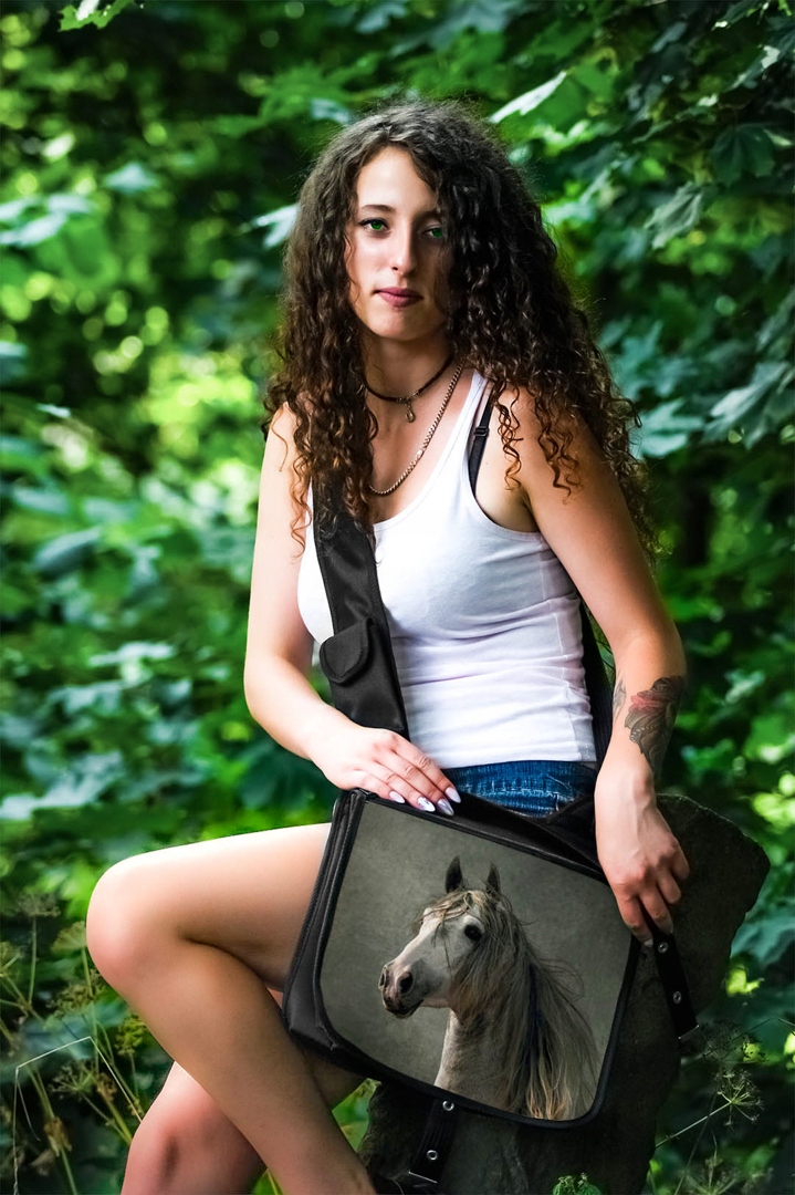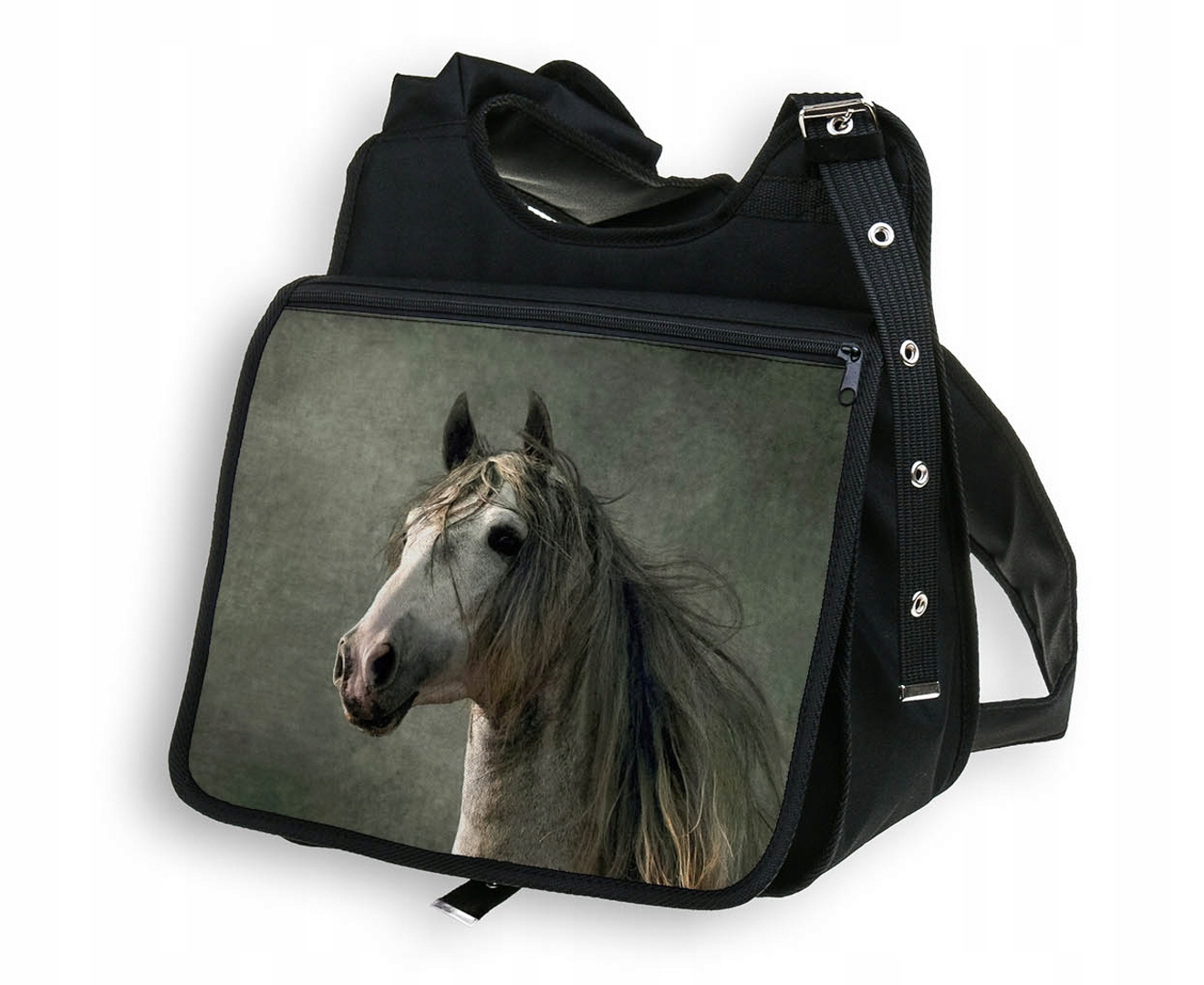 PIĘKNA TORBA Z KLAPKĄ DUŻA A4 Z NADRUKIEM - KONIE.
