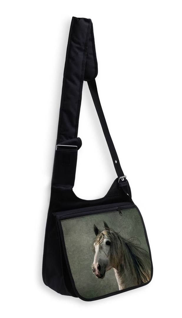 PIĘKNA TORBA Z KLAPKĄ DUŻA A4 Z NADRUKIEM - KONIE.