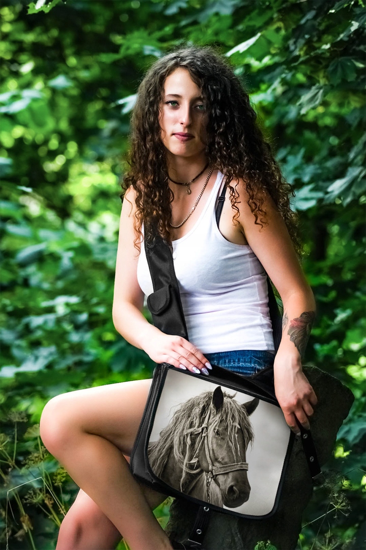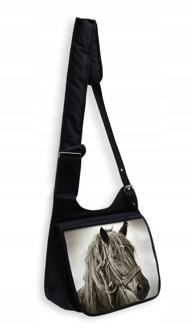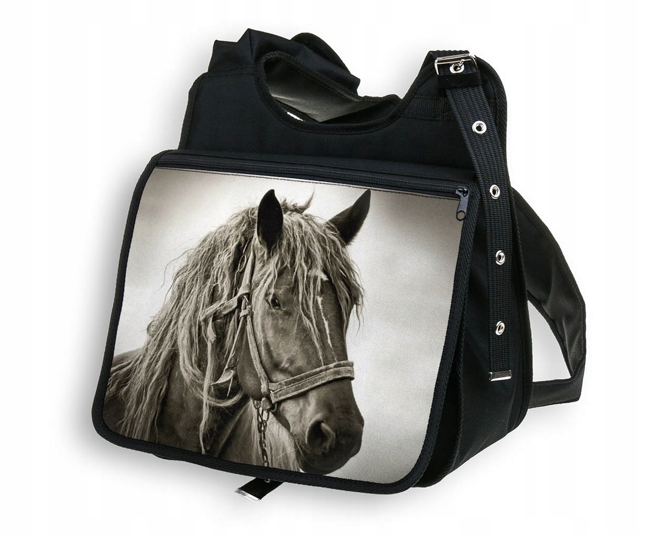 PIĘKNA TORBA Z KLAPKĄ DUŻA A4 Z NADRUKIEM - KONIE.