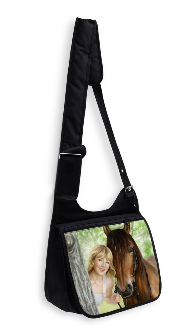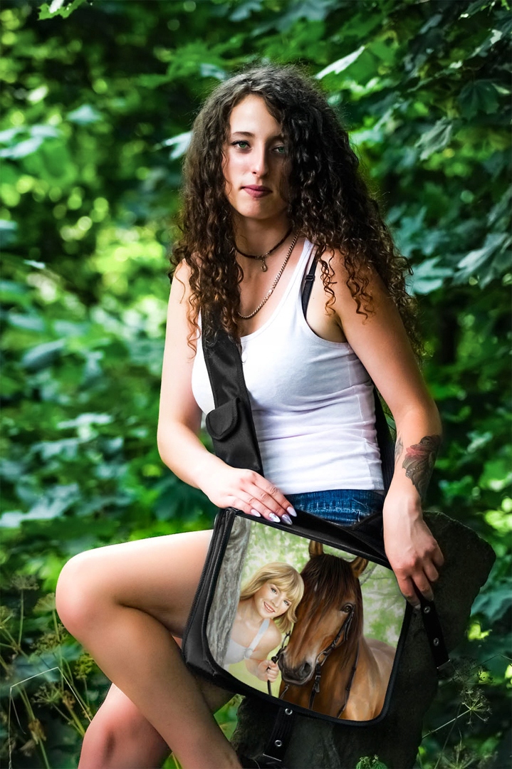 PIĘKNA TORBA Z KLAPKĄ DUŻA A4 Z NADRUKIEM - KONIE.