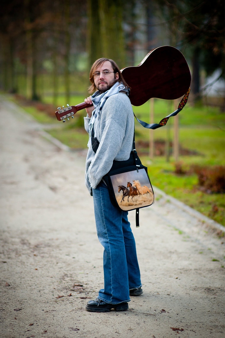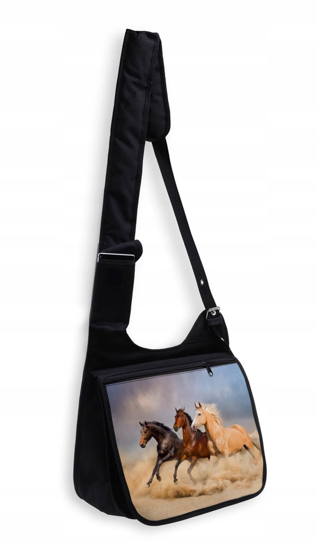 PIĘKNA TORBA Z KLAPKĄ DUŻA A4 Z NADRUKIEM - KONIE.