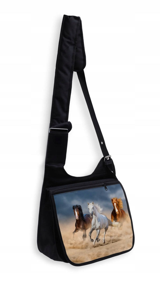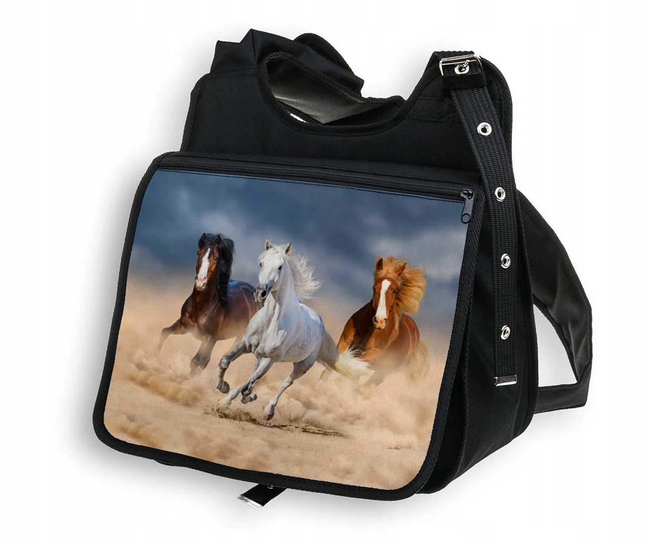 PIĘKNA TORBA Z KLAPKĄ DUŻA A4 Z NADRUKIEM - KONIE.