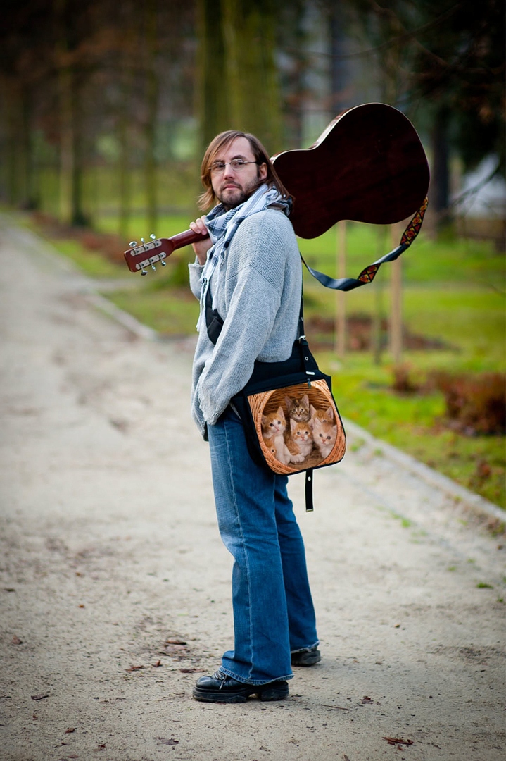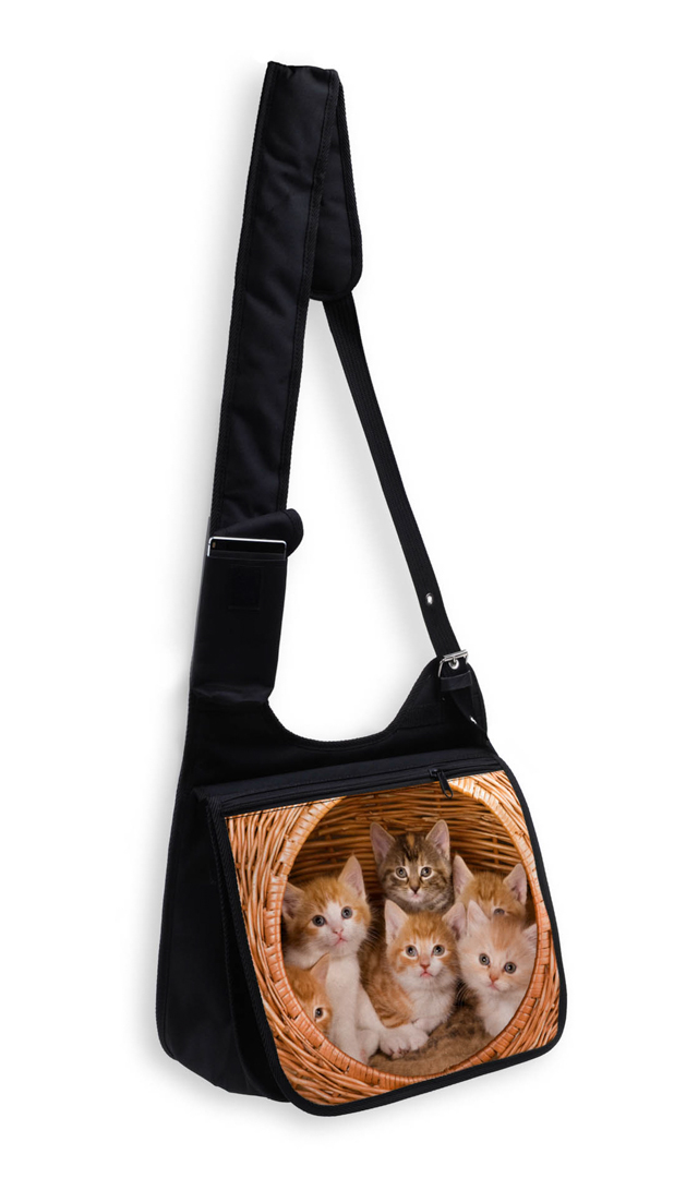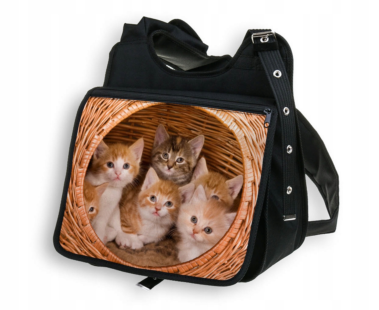 PIĘKNA TORBA Z KLAPKĄ DUŻA A4 Z NADRUKIEM - KOTY.