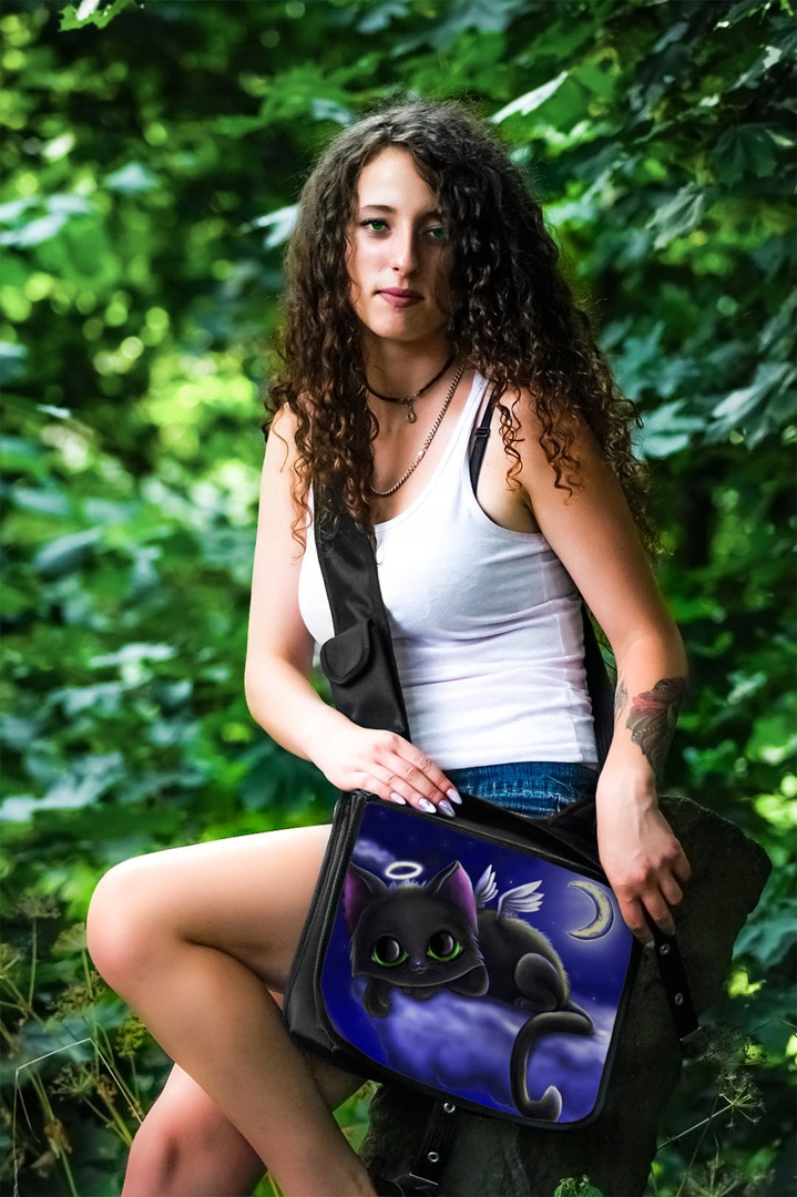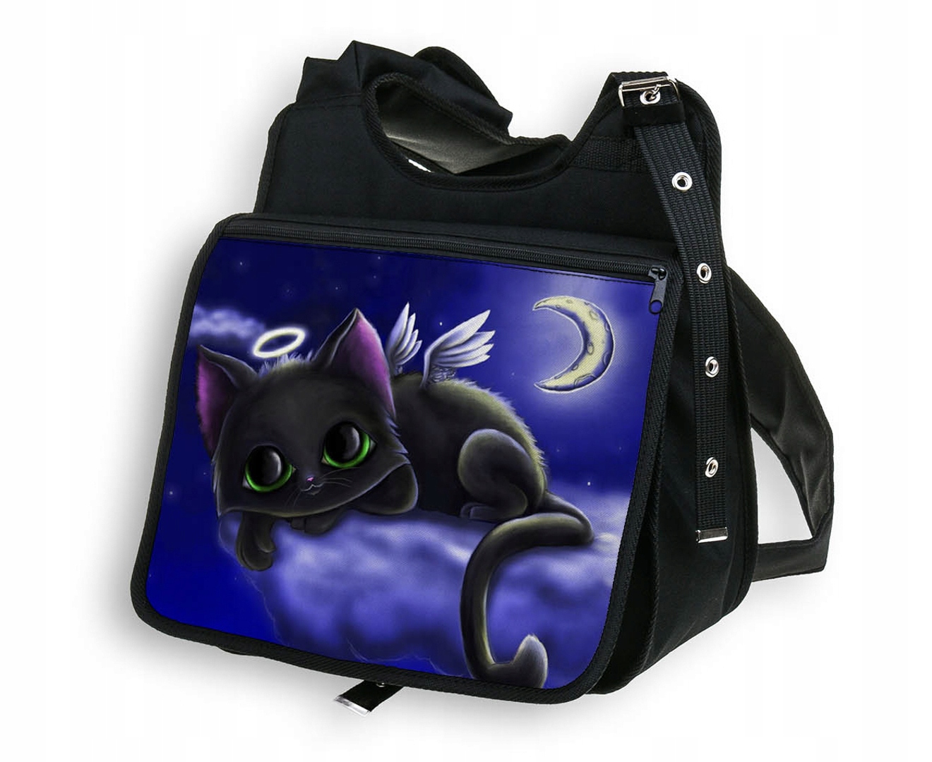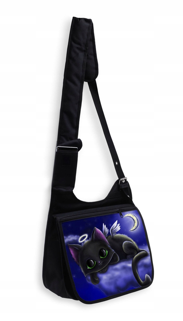 PIĘKNA TORBA Z KLAPKĄ DUŻA A4 Z NADRUKIEM - KOTY.