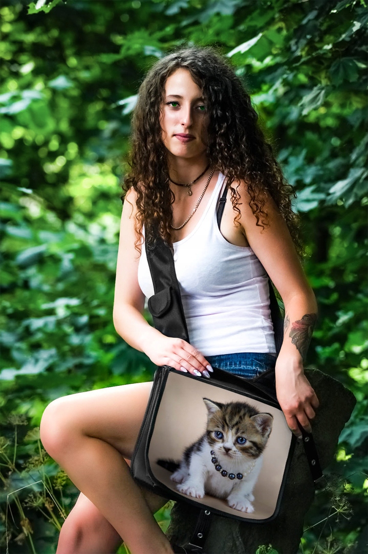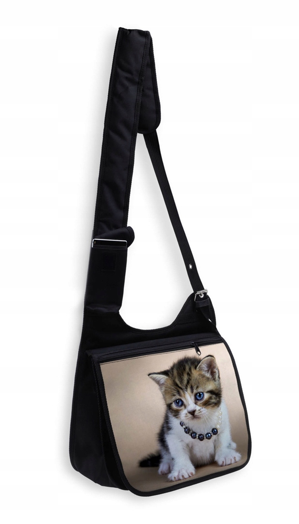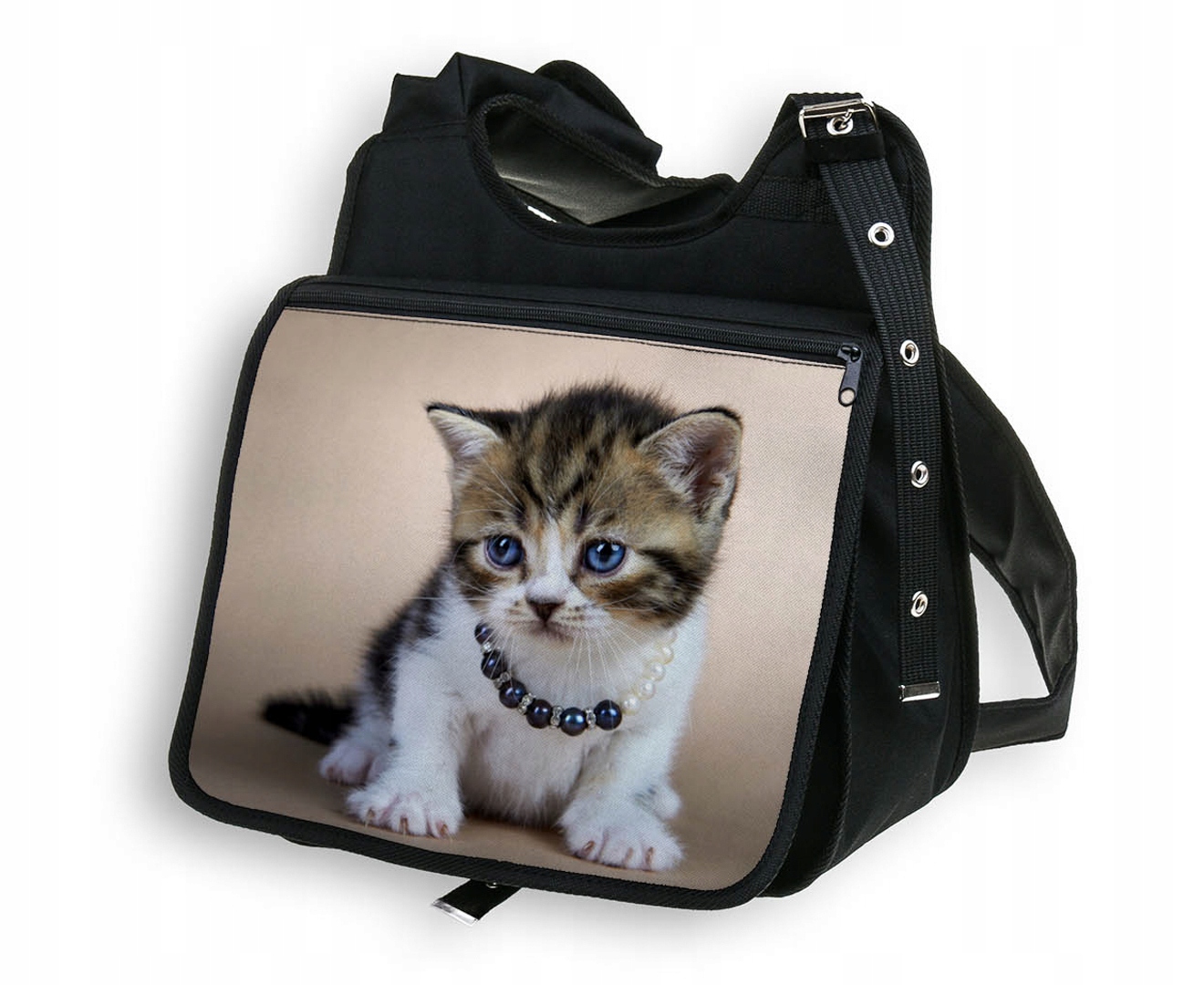 PIĘKNA TORBA Z KLAPKĄ DUŻA A4 Z NADRUKIEM - KOTY.