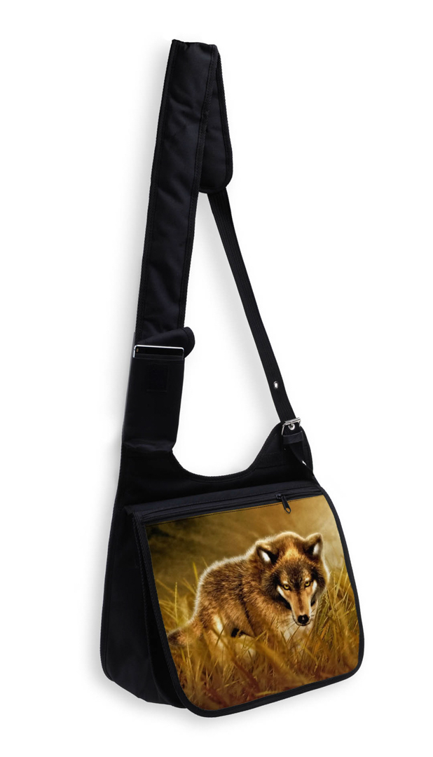 PIĘKNA TORBA Z KLAPKĄ DUŻA A4 Z NADRUKIEM - WILKI.