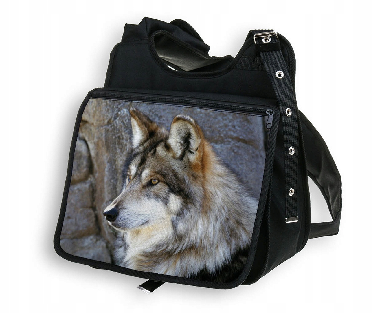 PIĘKNA TORBA Z KLAPKĄ DUŻA A4 Z NADRUKIEM - WILKI.