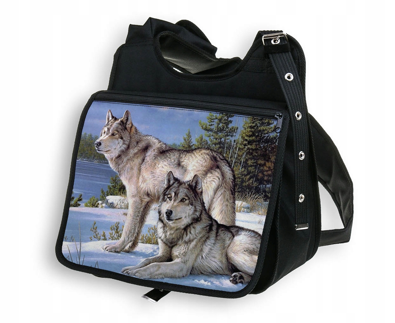PIĘKNA TORBA Z KLAPKĄ DUŻA A4 Z NADRUKIEM - WILKI.