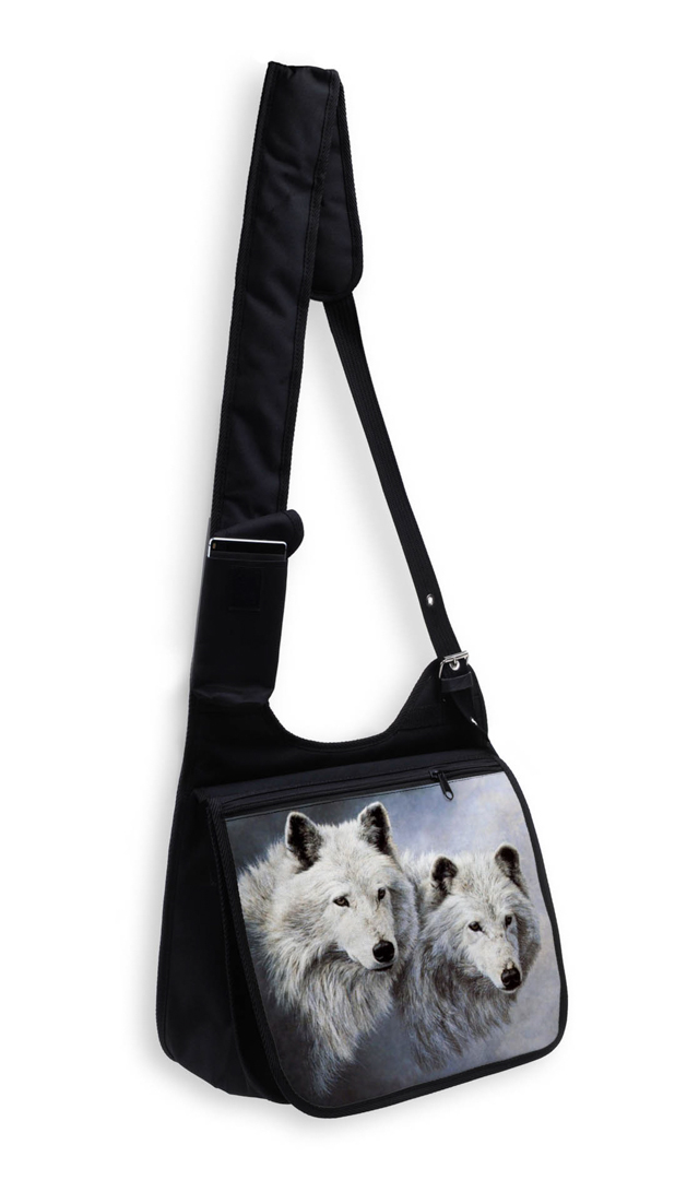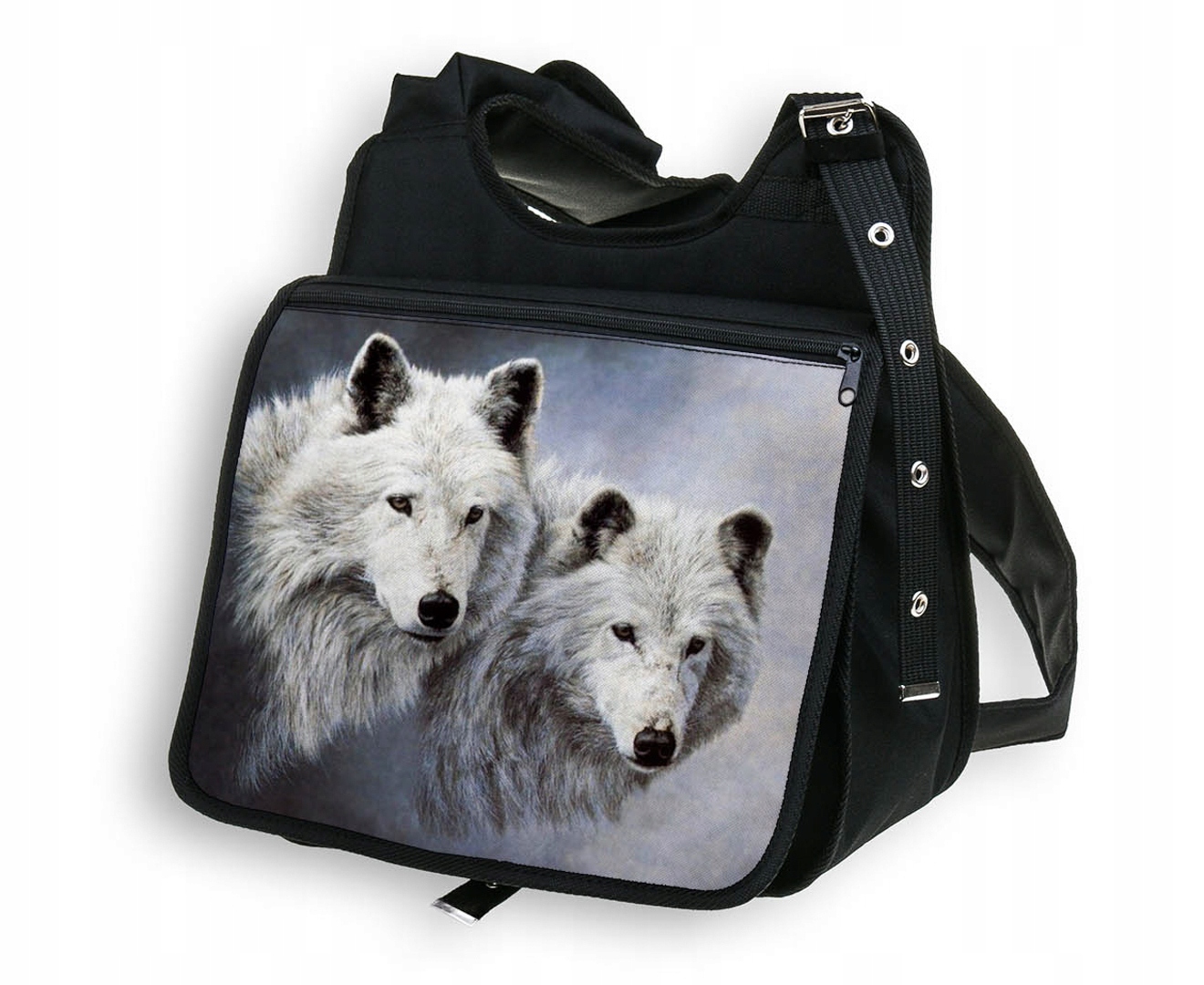 PIĘKNA TORBA Z KLAPKĄ DUŻA A4 Z NADRUKIEM - WILKI.