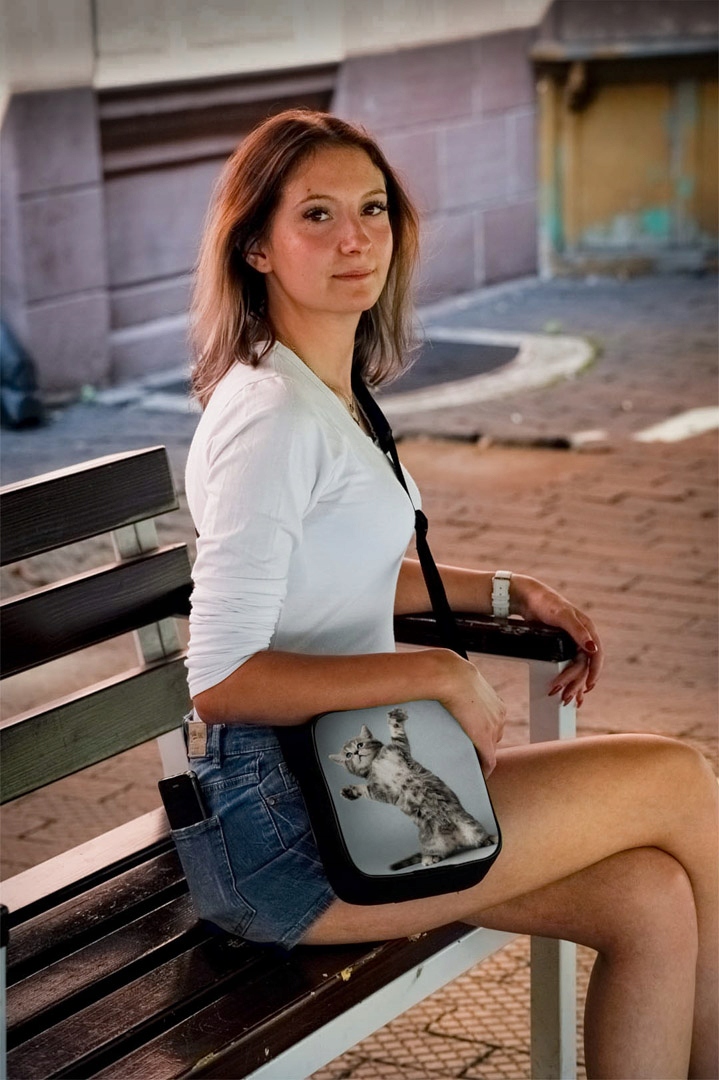 PIĘKNA TOREBKA Z NADRUKIEM - PIONOWA-KOT