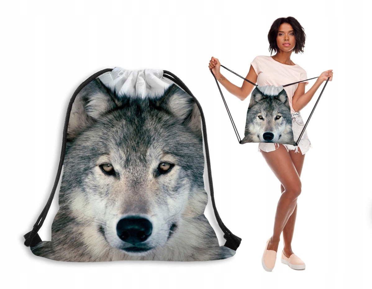 TORBA-WOREK-PLECAK-NADRUKI KOLOROWE- WILK SZARY