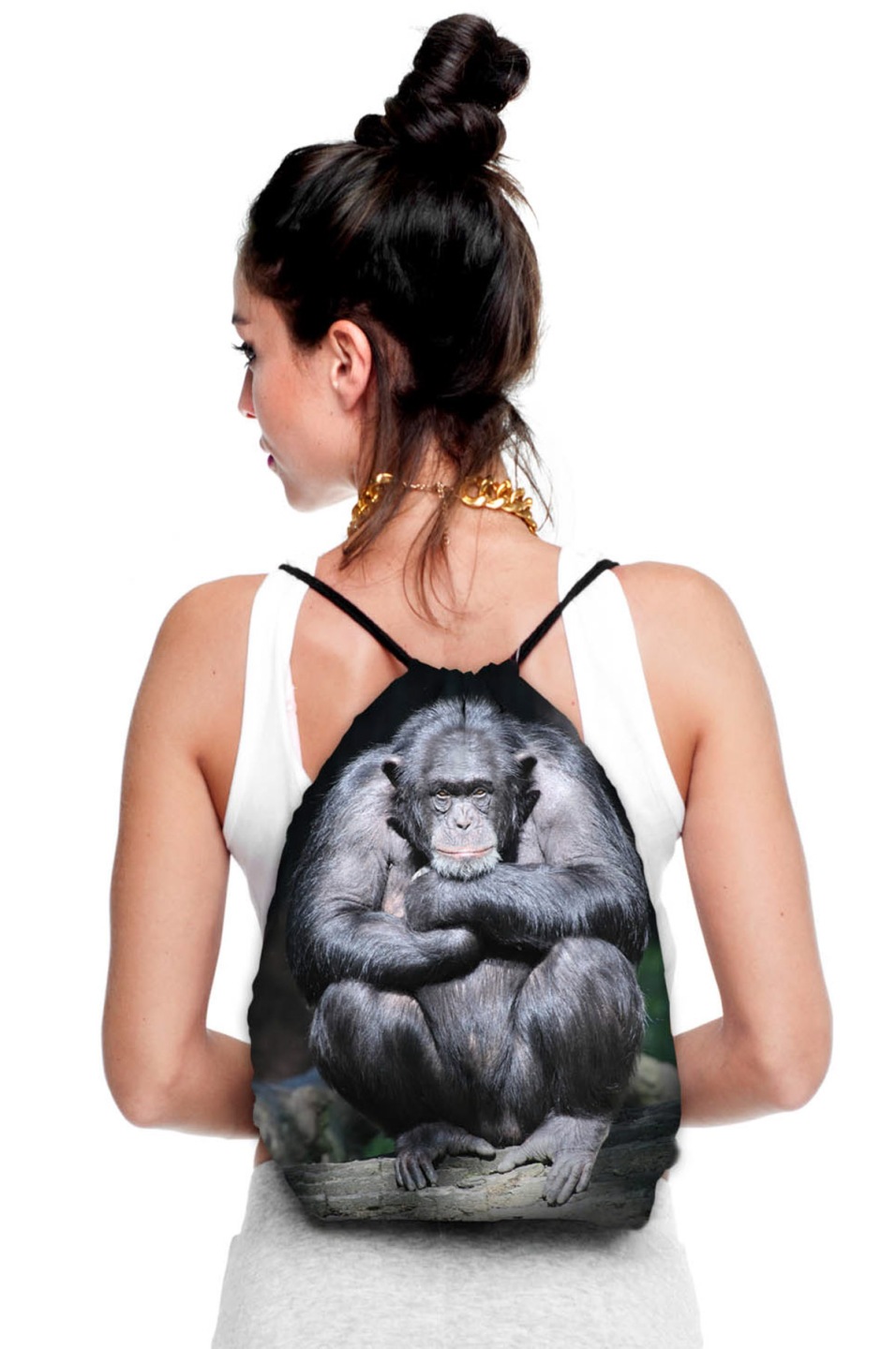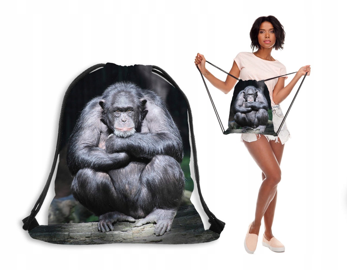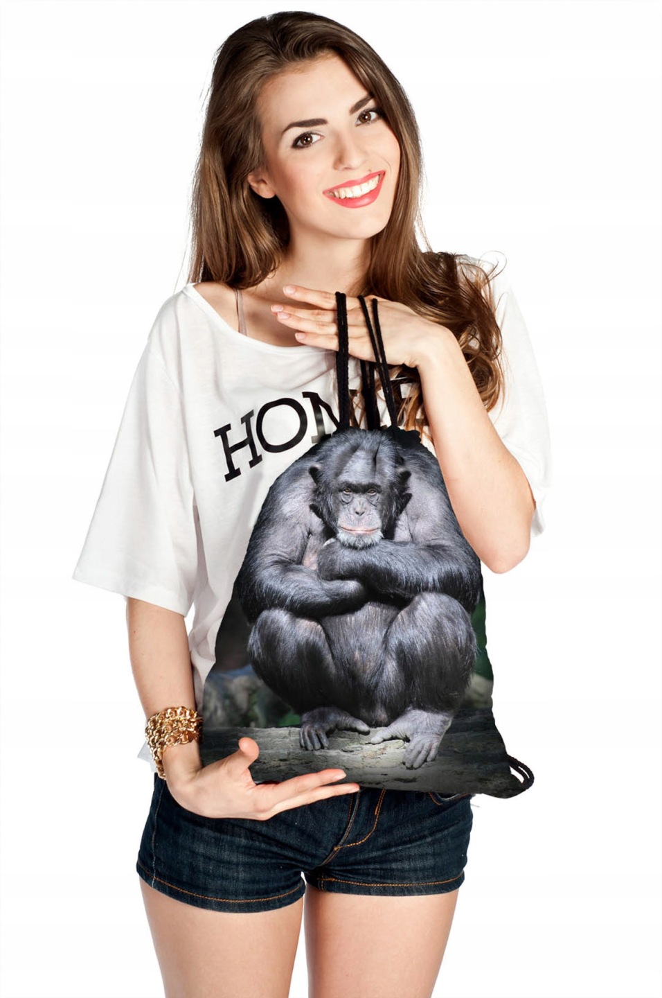 TORBA-WOREK-PLECAK-NADRUKI KOLOROWE- MAŁPA SZYMPANS