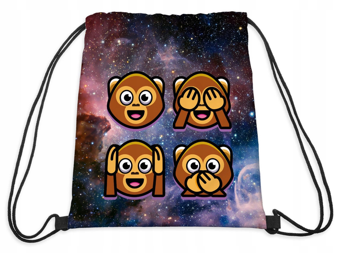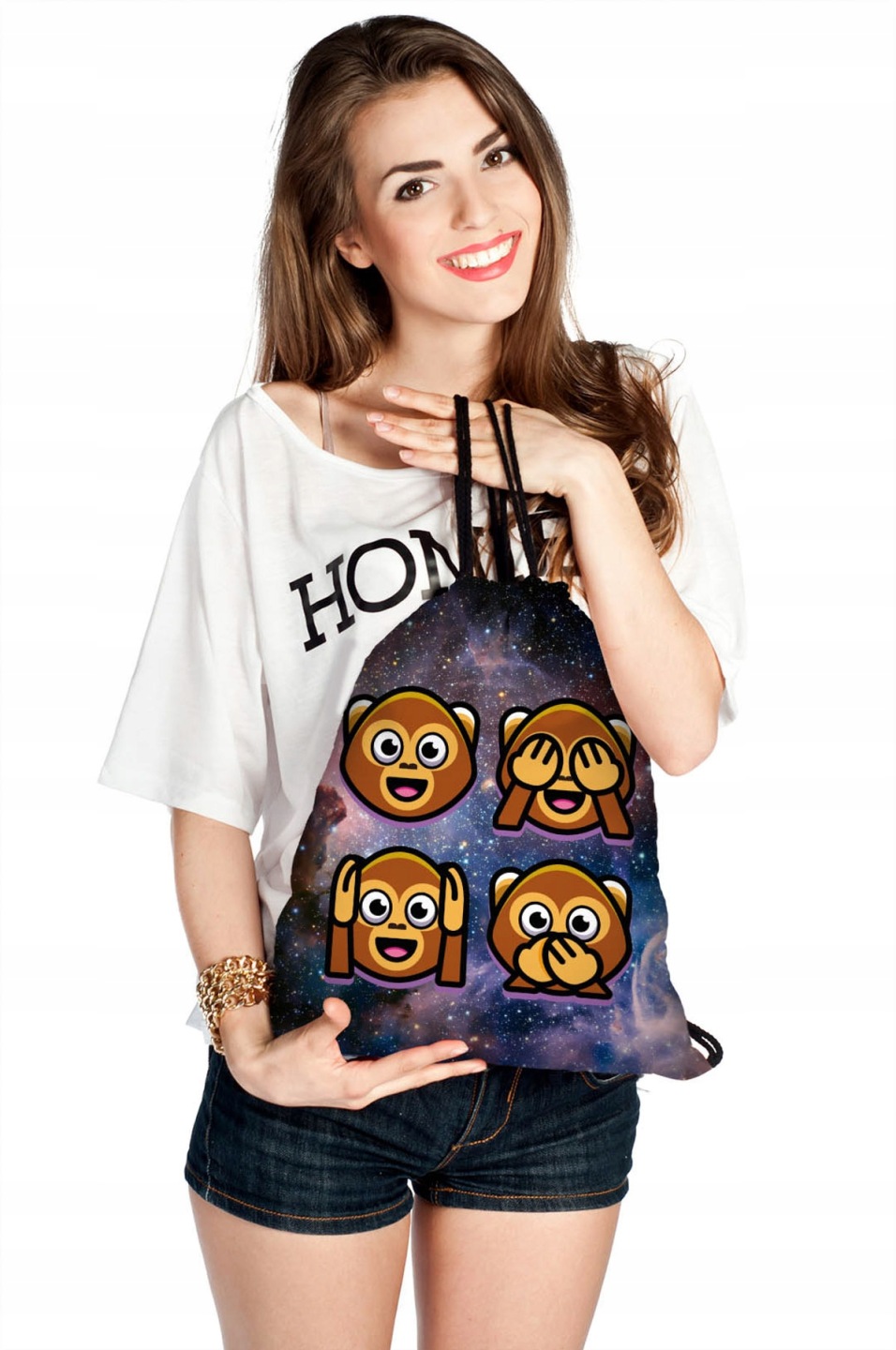 TORBA-WOREK-PLECAK-NADRUKI KOLOROWE-ŚMIESZNE MAŁPKI