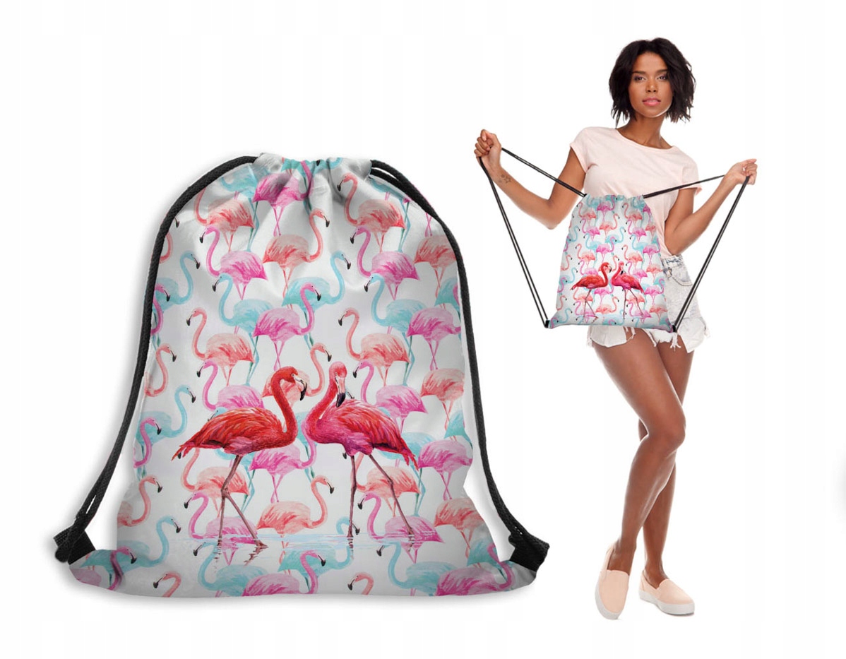 TORBA-WOREK-PLECAK-NADRUKI KOLOROWE- FLAMINGI